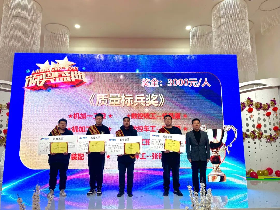 聚焦榮耀加冕,見證榜樣力量。晚會(huì)開始前,公司對(duì)2023-2024年度進(jìn)步青年、優(yōu)秀員工、質(zhì)量標(biāo)兵以及首屆功勛員工進(jìn)行表彰,感謝他們?yōu)閷?shí)現(xiàn)公司高質(zhì)量發(fā)展做出的積極貢獻(xiàn)。一本本榮譽(yù)證書不僅是對(duì)他們工作的肯定,更是對(duì)泰威人實(shí)干精神的傳承和弘揚(yáng)。通過樹立先進(jìn)典型,發(fā)揚(yáng)榜樣精神,進(jìn)一步增強(qiáng)了全體泰威人的凝聚力和競(jìng)爭(zhēng)力。頒獎(jiǎng)結(jié)束后,公司總經(jīng)理徐剛先生發(fā)表新年致辭,展望2024年公司發(fā)展前景。