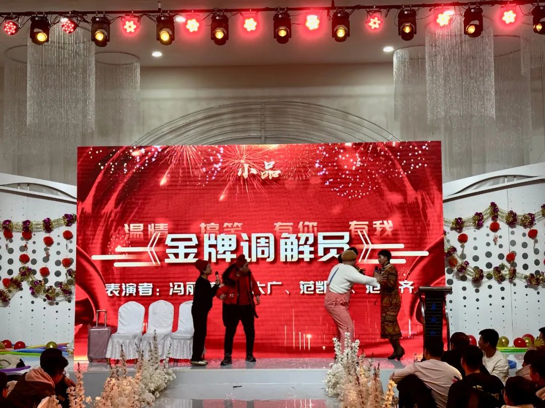 薈萃星光,觥籌熠熠,隨著頒獎(jiǎng)典禮的結(jié)束,晚會(huì)在瀟灑的開場(chǎng)舞《驍》中正式拉開帷幕,隨后,公司各部門工作人員為大家?guī)砹宋乃囇莩?,歌曲演唱《笨小孩》、《海芋戀》、《著魔》,黑管?dú)奏《上海灘》,舞蹈表演《科目三》、《桃花朵朵開》,小品節(jié)目《四大才子招親》、《金牌調(diào)解員》,大合唱《壯志在我胸》,一段段精彩紛呈的節(jié)目收獲了臺(tái)下觀眾源源不斷的掌聲與歡呼聲,展現(xiàn)了泰威人蓬勃向上的青春風(fēng)采。其中,小品《金牌調(diào)解員》的演員們,憑借著精湛、搞笑的演技,得到了全場(chǎng)觀眾們的認(rèn)可,小品被評(píng)為全場(chǎng)最佳節(jié)目。